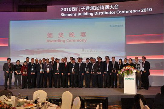 在西門(mén)子(中國(guó))有限公司舉辦的成都青城山“2010西門(mén)子樓宇科技集團(tuán)經(jīng)銷(xiāo)商大會(huì)”期間我公司喜獲“西門(mén)子建筑CPS BU佳經(jīng)銷(xiāo)商獎(jiǎng)”。